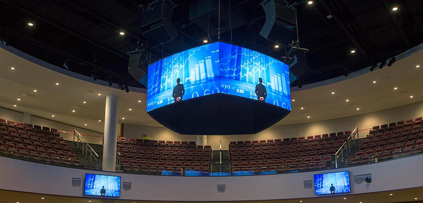 En plus, le poids total de cette solution d'affichage devait s'adapter à l'architecture du toit du bâtiment. « Avec cette disposition circulaire, une partie du public sera toujours située derrière l'orateur.. C'est pourquoi il fallait un système multi-panneaux composé d'écrans LED incurvés, clairement visibles depuis l'avant de chaque siège de la salle., quel que soit le lieu ».