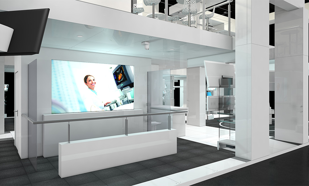 También puede verse en la feria de Dusseldorf la solución de visualización Cledis, que combina varios módulos de visualización de bajo consumo para crear pantallas flexibles de gran tamaño para su uso en quirófanos, salas de formación o áreas de recepción.