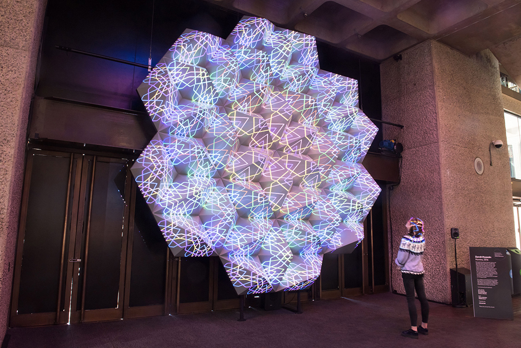 El proyecto se inició en verano con la instalación en el vestíbulo principal de cuatro proyectores de fósforo láser. Ces équipes, gestionados con Pandoras Box, iluminan dos instalaciones. Una de ellas, Numina, de la artista Zarah Hussain, utiliza dos proyectores de fósforo láser de la Serie HS de Christie. Esta obra es una gran retícula hexagonal iluminada mediante mapping de proyección con motivos geométricos inspirados en el arte islámico tradicional. La potente proyección sobre una escultura 3D atrae la atención de quienes la han visto en directo pero también de las redes sociales.