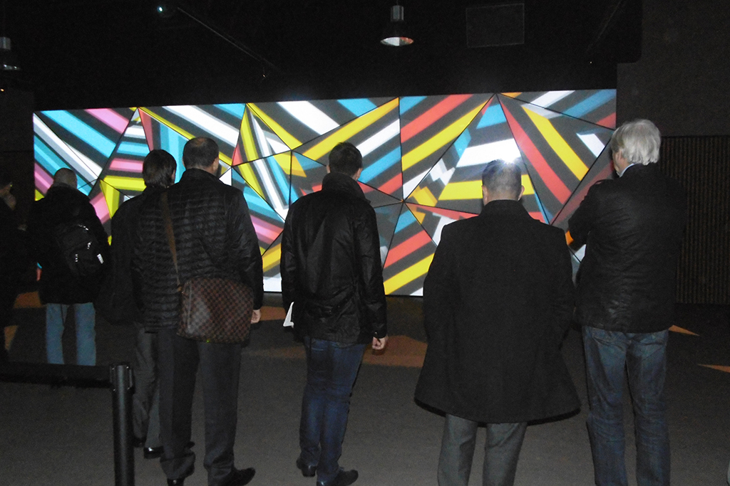 En outre, Fluge también ha mostrado la instalación fija que ha realizado en una de sus salas, en colaboración con Cubensis, con un videomapping de gran formato donde las imágenes son proyectadas desde dos equipos de Panasonic sobre una pared cuyas superficie ha sido recubierta con un material de cristal que forma un conjunto de formas geométricas, donde se pudo disfrutar de la instalación audiovisual domotizada de la planta, gestionada por un sistema Creston.