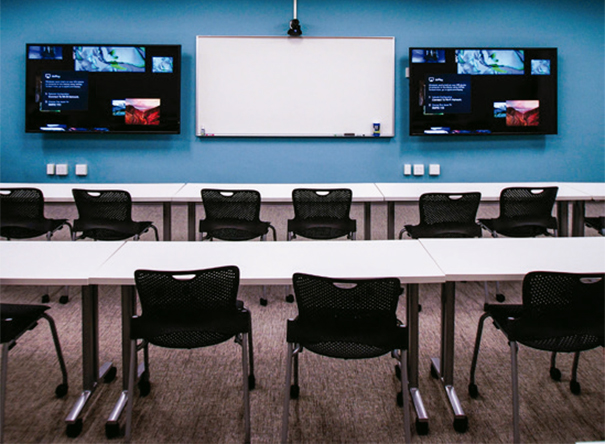 Este centro se completa con dos salones, cada uno con pantallas E805 duales de 80 pulgadas que se utilizan principalmente para entregar materiales didácticos de tipo conferencia, incluyendo la educación a distancia, en el que instructores de todo el país son capaces de enseñar a través de GoToMeeting.