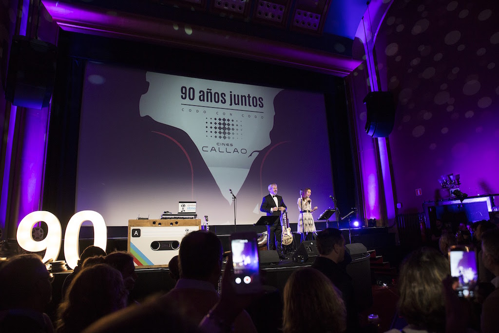 En el interior del cine también se han dado cita conocidas figuras del mundo del cine y el espectáculo para celebrar este aniversario, con un acto presentado por Carlos Sobera y la proyección de un vídeo conmemorativo de los 90 años de historia del Cine Callao, en el que figuras de la industria cinematográfica, como la directora de cine Chus Gutiérrez, los productores Enrique Cerezo y Enrique López-Lavigne, y la actriz Terele Pávez, entre autres, hacen un repaso del importante papel de esta sala en la historia del cine de Madrid, así como de la presentación de su nueva imagen corporativa.