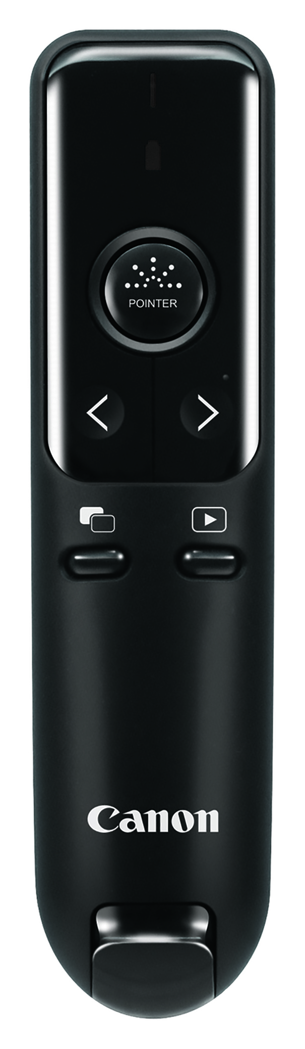 El PR500-R incorpora una mochila (clé électronique) extraíble que permite la conexión rápida tanto a PC como Mac y es compatible con Microsoft PowerPoint, Mac Keynote y Adobe Reader. Con él se puede controlar el paso de la página anterior, página siguiente, el inicio y fin de la presentación de diapositivas y la pantalla negra.