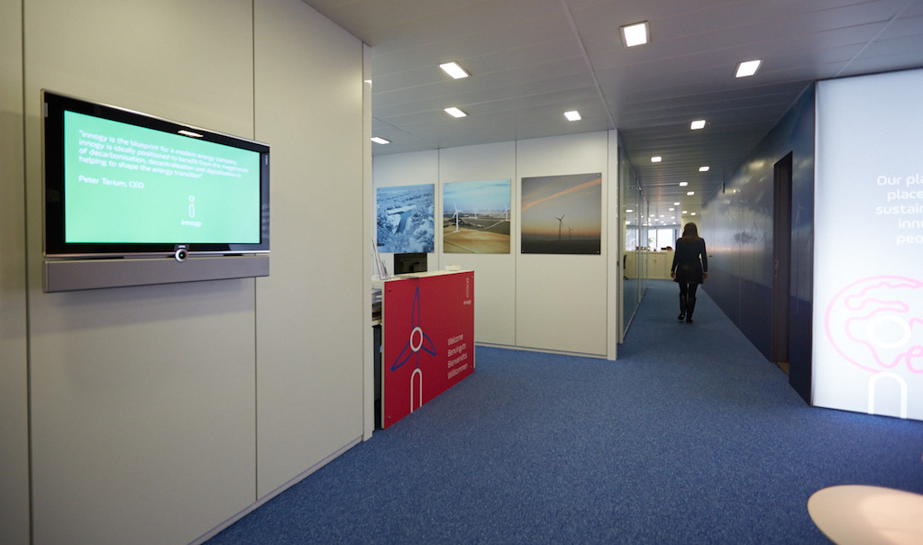 Para el desarrollo y gestión de este proyecto, innogy SE ha contado con el desarrollo y gestión del especialista Néo Publicité, que ha puesto en marcha dos canales de comunicación –uno interno y otro corporativo-, diseñados para informar a los empleados de las novedades de la compañía y del sector, además de potenciar la imagen de marca y el branding cuando se visita la empresa, respectivement.