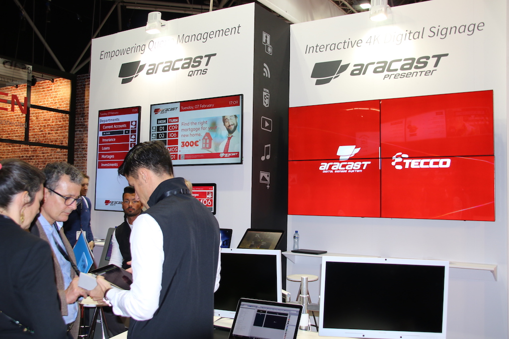 Otra de las novedades que ha presentado Tecco en ISE 2017 es aracast QMS, un sistema de información digital que combina las prestaciones del sistema aracast Digital Signage con una herramienta de gestión de turnos ágil, intuitiva y eficiente que mejora la experiencia del usuario.