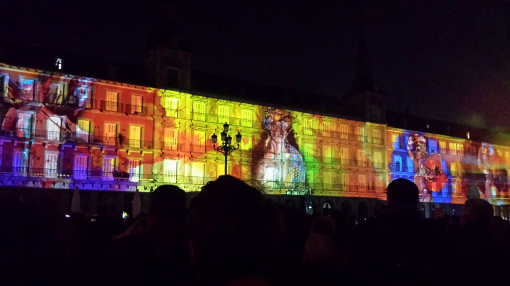 Considerado el más grande realizado hasta la fecha en España, este viaje audiovisual ha supuesto el pistoletazo de salida de las actividades que se han organizado para conmemorar los 400 años de la emblemática plaza madrileña. Un espectáculo de 360º para el que se han precisado 24 projecteurs, que han ofrecido una potencia de 880.000 lumens, 40 focos de luz y ocho torres de sonido repartidas por el perímetro.