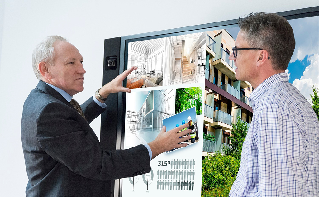 La gran superficie permite crear, anotar y presentar en la pantalla con posibilidad de importar y exportar el contenido con la aplicación de pizarra. Gracias al software de colaboración, InfinityBoard permite la presentación inalámbrica y la interacción entre pantalla y dispositivo, y entre pantallas, lo que hace de la solución un método idóneo para las nuevas formas de trabajo. Con la función MultiPresenter cualquier usuario puede utilizar su propio dispositivo para compartir la información.