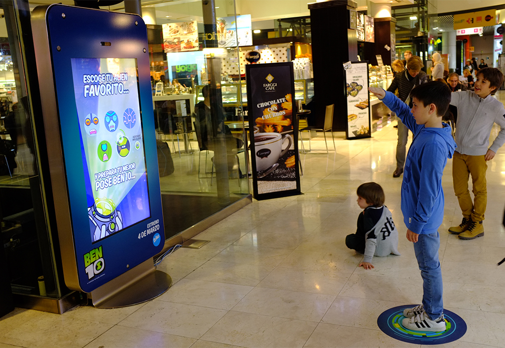 Desarrollada en centros comerciales de Madrid, Barcelone et Valence, se muestra con el objetivo de reforzar entre los más pequeños la interacción gestual y la realidad aumentada a través de pantallas interactivas.