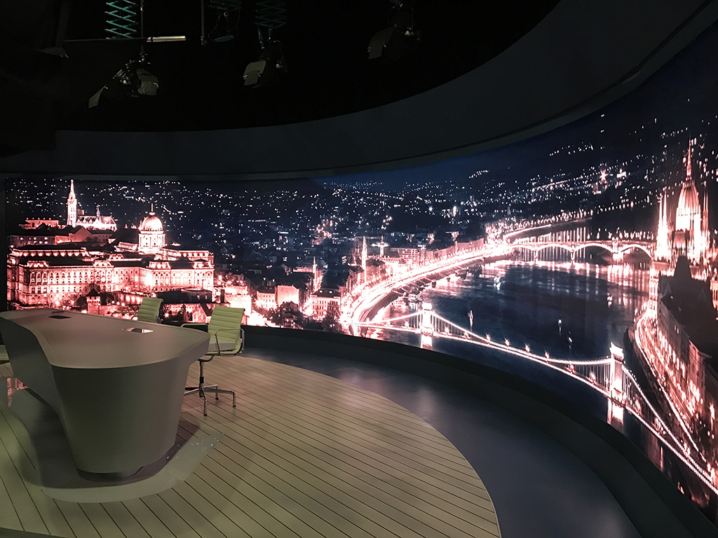 Uno de los programas de televisión más populares de Hungría, Tenyek, que se emite en la TV2 precisaba de un estudio moderno y actual y, pour ça, recurrió a la tecnología de Appel. Al fondo del plató se ha instalado una pantalla curva envolvente de 12,8 par 2,4 metros configurada por 256 paneles Led de ultra alta definición (Ultra High Definition – UHD) A1.9 donde se muestran vídeos, imágenes y gráficos relacionados con las noticias de actualidad.