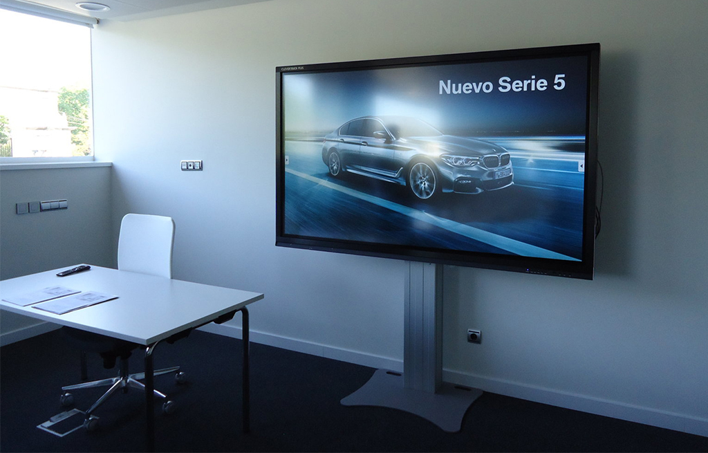 Des moniteurs Clevertouch ont été installés chez BMW avec des supports au sol fixes motorisés Traulux, qui permettent aux utilisateurs d'ajuster la hauteur, qu'ils soient hauts ou bas, avec une variation de hauteur de 500 mm, permettant un accès complet aux fonctions tactiles. Ils ont un design solide, ce qui le rend idéal pour les grands écrans ou les moniteurs tactiles.