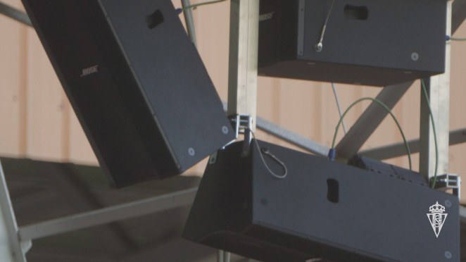 Le département projet Bose en Espagne, con una larga experiencia en sonorización de grandes espacios, ha diseñado para el estadio del Sporting de Gijón un sistema distribuido de altavoces de intemperie de la serie Bose LT, que permite dotar al campo de un sonido espectacular, y que logra unos altos niveles de presión sonora e inteligibilidad para los más de 30.000 aficionados que se dan cita en cada partido. En tout, el proyecto cuenta con 23 clusters de altavoces instalados en la cubierta del estadio.