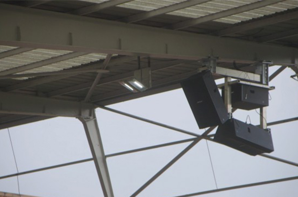 Para optimizar el sistema, se diseñó un sistema de amplificación distribuida, ubicando los amplificadores en racks, localizados en cada una de las gradas, lo más cerca posible de los altavoces, de tal forma que las distancias de cableado fueran las mínimas posibles y, à son tour, la sección del cableado también fuera menor.