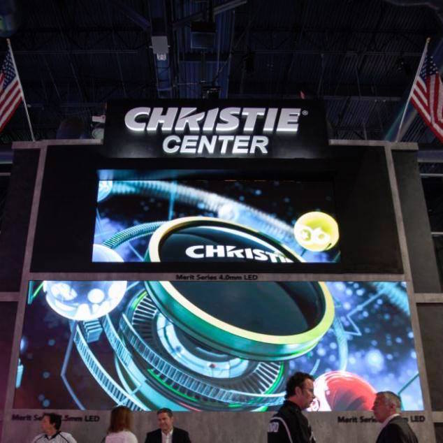 L'une des principales attractions du stand de l'entreprise lors de cet événement a été le Christie Center., un espace à thème sportif, intégré et synchronisé, qui passe en revue la gamme d'expériences visuelles que l'entreprise met à disposition pour tous les types de clients et tous les budgets. Cet espace présentait une cartographie sur un terrain de sport à l'aide du projecteur Christie Boxer et du serveur Pandoras Bos Quad..