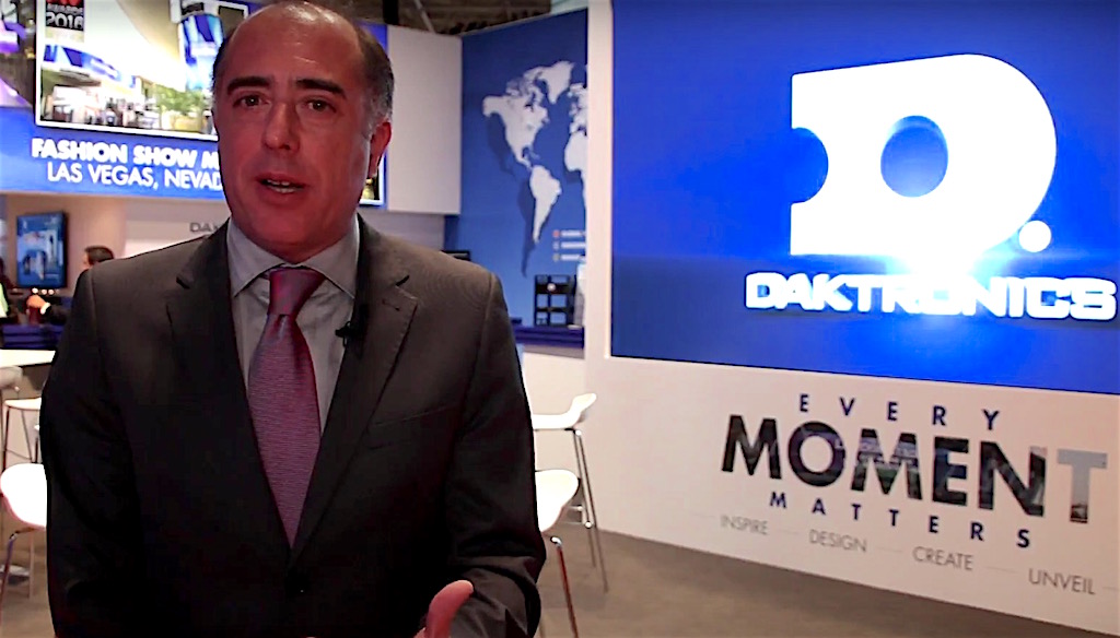 Pantallas Led con píxel pitch de alta densidad y resolución, con diseños de cualquier tamaño, curvos y transparentes para dar respuesta a cualquier tipo de proyecto, ya sea pequeño o grande, son algunos diferenciales que Iván del Río, South Europe Regional Manager de Daktronics, destaca en esta vídeo entrevista realizada durante su participación en ISE 2017, que se plasman en importantes y espectaculares instalaciones como la realizada en el madrileño Estadio Santiago Bernabéu, entre otras.