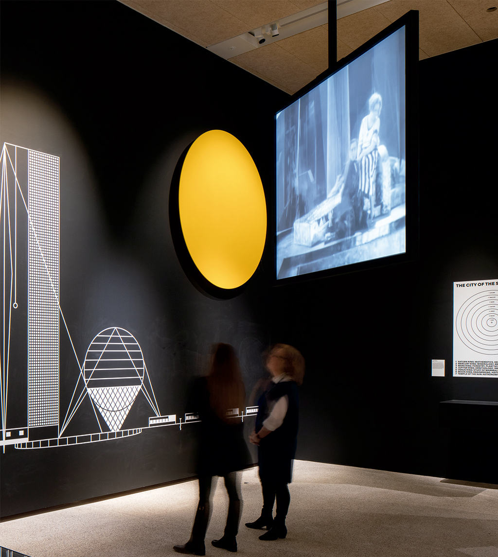 Cette exposition, visible jusqu'au début du mois de juin, a été inaugurée pour célébrer le centenaire de la révolution russe et constitue une rétrospective de la capitale moscovite vue de manière idéalisée.. Il montrait des dessins architecturaux à grande échelle soutenus par des œuvres d'art., propagande et publications de la décennie des années 20 oui 30. Six projets architecturaux non construits ont été exposés à l'exposition.