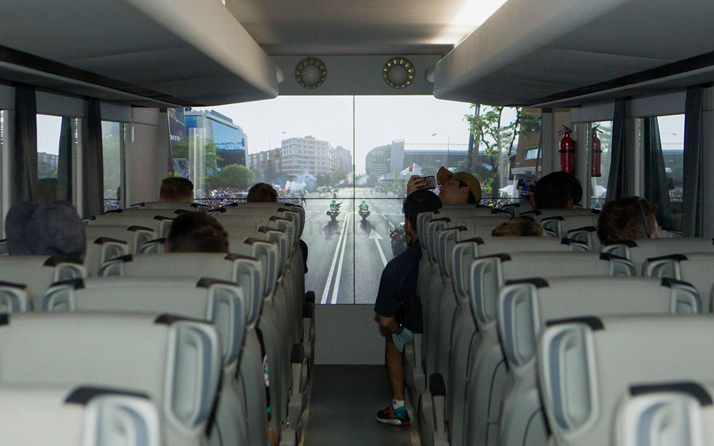 Durante este tour virtual, los visitantes podrán saber cómo vive un jugador del Real Madrid el trayecto en autobús que realiza desde que sale de Valdebebas hasta que llega al estadio del Santiago Bernabéu en las horas previas a disputar un gran partido.