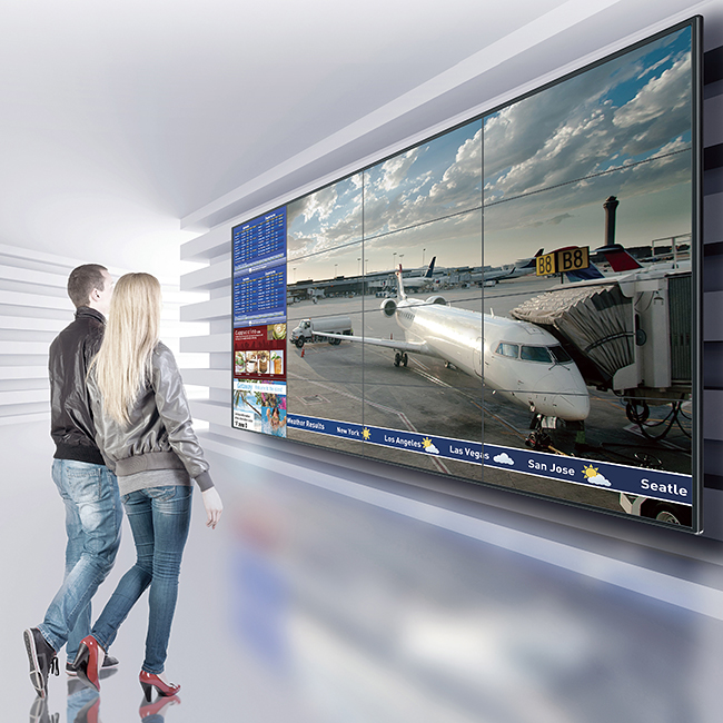 Disponible en format 49 oui 55 pouces, cette série, distribuida por Crambo, incluye una distancia entre marcos de 3,5 mm, que se combina con la tecnología IPS de alta resolución y ofrece imágenes claramente visibles, incluso desde ángulos oblicuos, lo que resulta idóneo para aplicaciones de señalización digital.