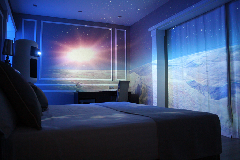 Le lecteur-projecteur « tout-en-un » MK Player360 de Broomx Technologies a été installé dans la Immersive Art Junior Suite, avec lequel il est possible de transformer la pièce grâce à un contenu audiovisuel., personnaliser et adapter le séjour aux goûts et préférences du client, et sans nécessiter d'appareils de réalité virtuelle pour un usage individuel.