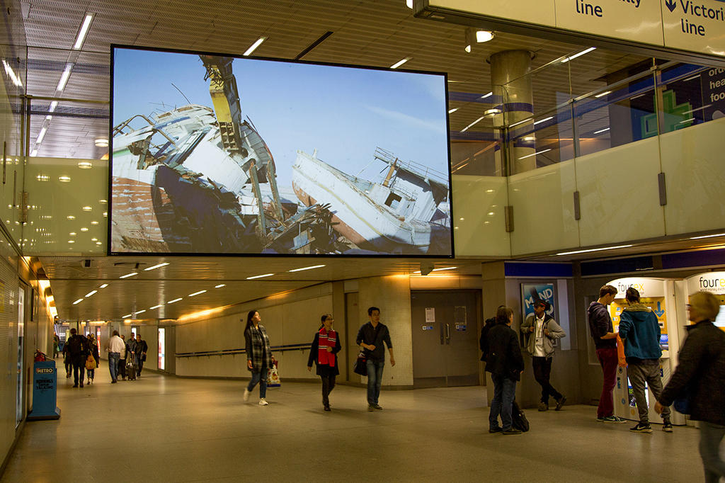 Un écran Supernova Infinity a été installé à la station de métro King's Cross St Pancras. 5 mètres de large, ainsi qu'un projecteur laser Panasonic 10.000 lumens. Des équipes chargées de capter l'attention des passants avec la projection du film, de 12 minutes, La bureaucratie des anges, des artistes Broomberg & Canari.
