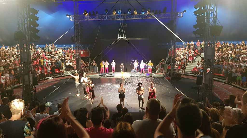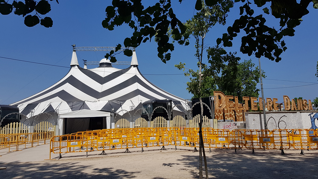 El centro neurálgico del festival es una gran carpa de circo de 34 metros de diámetro donde se realizan los espectáculos variados y de vanguardia del evento. Aquí se proyectan los vídeos de inauguración y clausura, así como diferentes audiovisuales que resumen el transcurrir de Deltebre Dansa, y algunas representaciones que incorporan proyecciones.