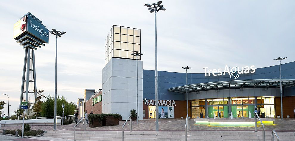 El centro comercial de TresAguas está ubicado en la localidad de Alcorcón (Madrid) y ha sido concebido como un espacio abierto donde la naturaleza, la culture, las compras y la diversión conviven en un marco arquitectónico que rinde homenaje a la luz, el agua y el color.