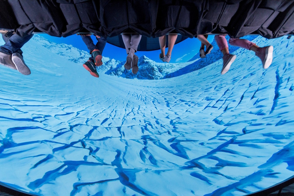 Los pasajeros disfrutan de unas espectaculares proyecciones en 3D en una pantalla en cúpula, compuesta de dos mitades cóncavas con un diámetro de 21,5 mètres chacun. Efectos como el aire, el agua o el olor intensifican la sensación de volar que los viajeros experimentan mientras se mueven a través de los domos, de dieciséis metros de altura.