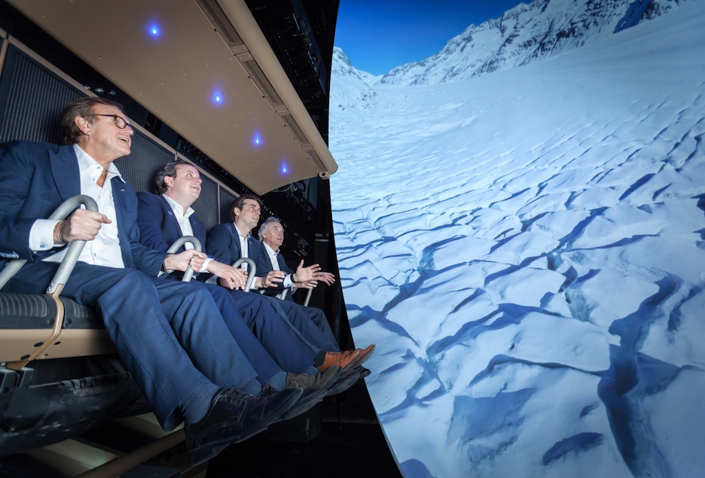 En ce sens, la opción ha sido una solución de proyección multicanal con tres proyectores 4K, en lugar del proyector único de otros ‘flying theatres’. “Ofrecimos la solución multicanal porque ofrece una mayor producción lumínica y resolución. Mais, en plus, ayuda a conseguir una experiencia mucho más inmersiva que con un único proyector situado en el centro”, puntualiza Gellermann.
