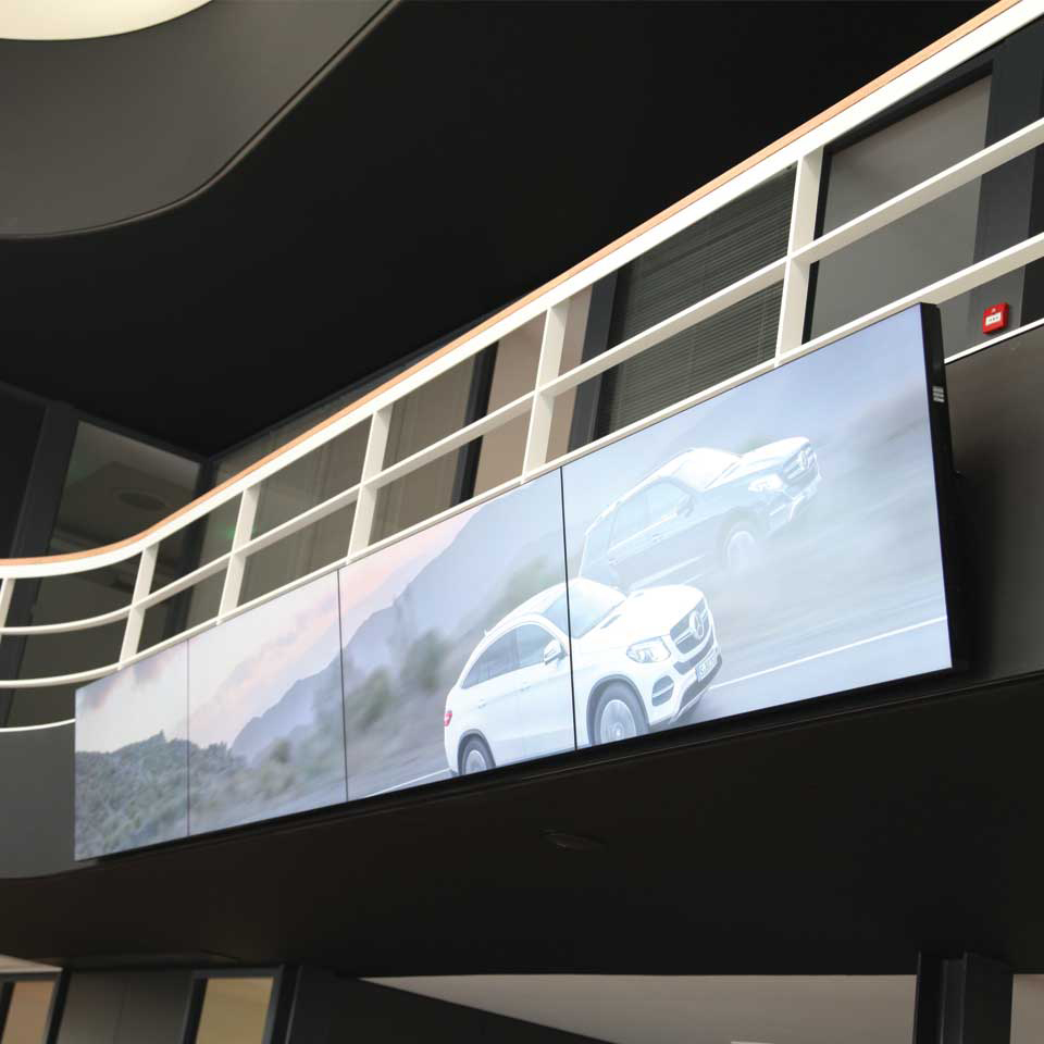 Con el fin de brindar una mejor experiencia a sus clientes y visitantes, el concesionario apostó por la tecnología de señalización digital e instaló un videowall en configuración de 4×1 para cuyo diseño se han utilizado pantallas Ultra Thin de 55 pulgadas y un bisel de 3,5 mm.