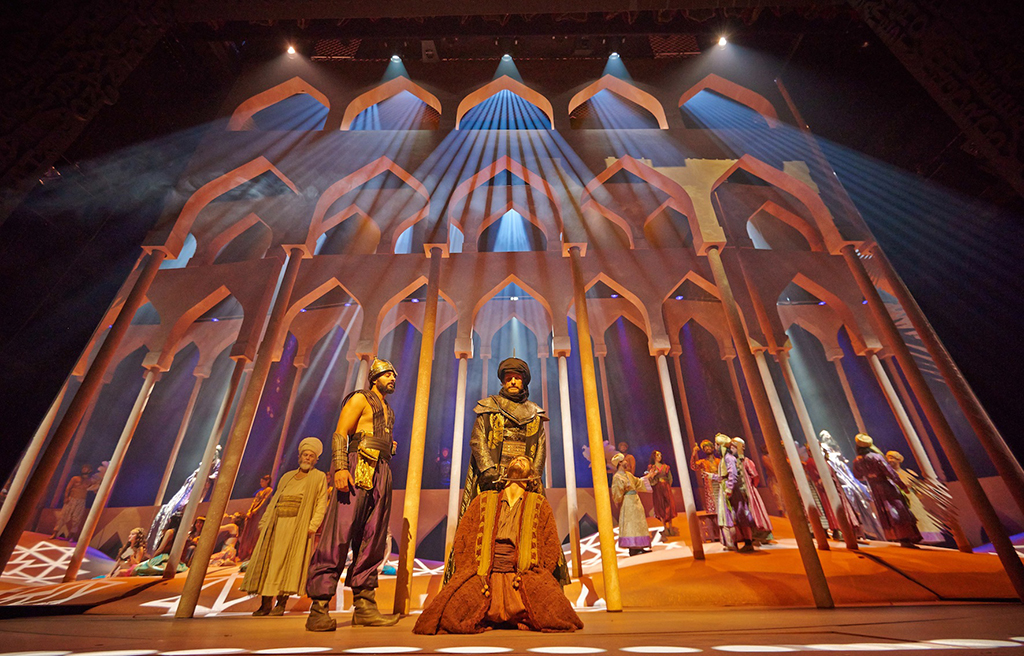 Al control se encuentra la versión Light de la popular grandMA2 de MA Lighting, una apuesta siempre segura para una puesta en escena en la que nada puede fallar. Pour ta part, los motores VMK-S II 500 con unidad de control V-Motion 40E, VMK-s II 250 con V-Motion 30E, PLUSlite 500 y UPplus 320 de Movecat son los encargados de movilizar el material de escenografía con el que se logra transportarnos desde los oscuros mercados ingleses hasta las dunas y palacios persas, todo controlado con un I-Motion Basic C II de la misma marca.