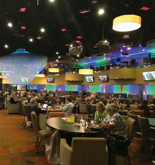 À l'heure actuelle, el establecimiento dispone de 155 pantallas planas de la serie P (70 P402 , 17 P463 , 18 P702 , 8 P804 , 34 P553 8 NEC X981UHD-2 ) que se encuentran instaladas en el casino y el resort, así como el restaurante Kelsey’s y el bingo. En estos displays se muestran promociones, eventos e información sobre el casino, así como programas de televisión y deportes en los bares.