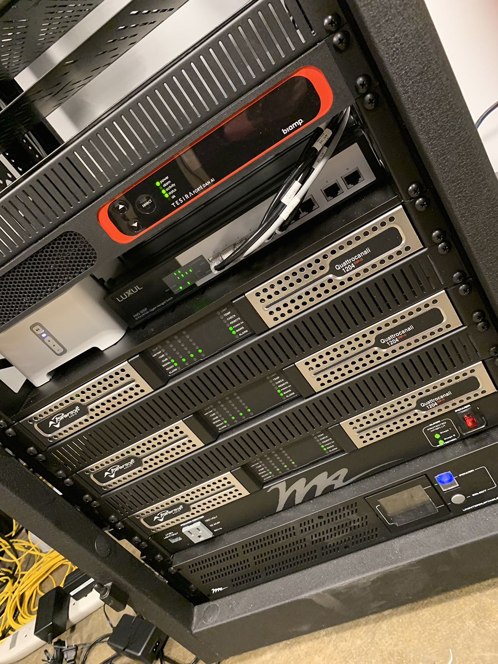 “Necesitaba muchos canales de audio, todos corriendo desde una ubicación centralizada. Cada zona opera independientemente, bajo circunstancias normales. Donc, cuando tuve que empezar a rutear el audio de todas las salas hacia una ubicación central, el protocolo Dante, el DSP y el factor de forma pequeña hicieron que todo fuera más simple”, comenta Bohrer.