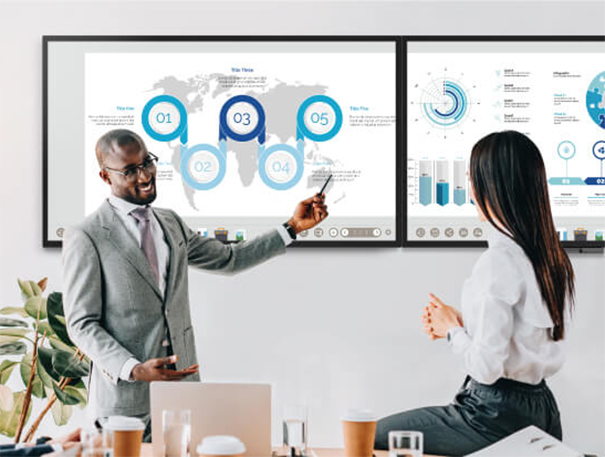 Esta solución 4K UHD (3.840×2.160 pixels) de 86 pulgadas facilita el intercambio de ideas y estimula la colaboración en los entornos empresariales. En el corazón de DuoBoard se encuentra Collaboration+, un conjunto de características diseñadas para maximizar la eficiencia, la productividad y el trabajo en equipo como Duo Boards, Duo Windows, Duo OS y EWrite.
