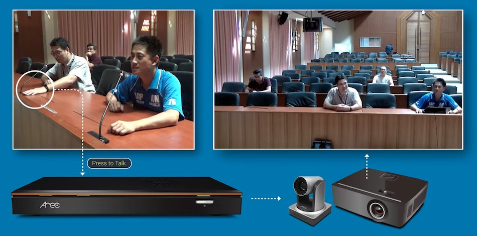Junto con el sistema de micrófono para conferencias y cámaras PTZ, permite a estas últimas rastrear y enfocar el orador que está hablando, automatiquement, cuando este pulsa el botón para hablar en el micrófono. Nadie tiene que operar la cámara, esta detecta el micro activo y pone en plano al ponente.