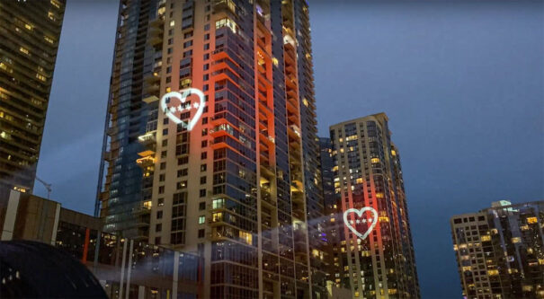 Ce spectacle de lumière nocturne, qui a été lancé par le spécialiste Creative Live Control, basé dans cette ville américaine, vise à maintenir l’énergie positive de la population et à célébrer les efforts de tous les héros combattant le virus.