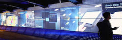 Los contenidos son interactivos y la instalación incluye sensores láser para lograr tal efecto. En plus, la audiencia puede explorar interactivamente imágenes gigapixel.