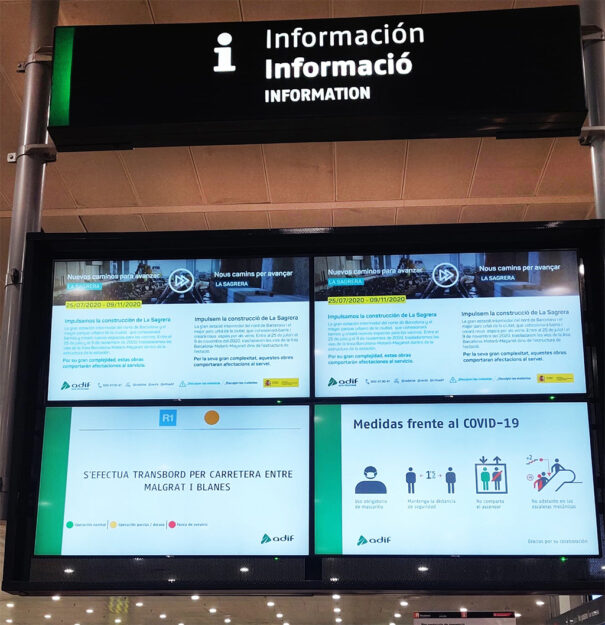 El software de gestión de contenidos Deneva ha resultado clave para recordar a los usuarios de la obligatoriedad de cumplir las normas establecidas para garantizar las medidas de seguridad sanitarias, así como informar de posibles incidencias o guiar a los transeúntes a través de las estaciones para evitar aglomeraciones, y ayudar a prevenir la propagación de la COVID-19.