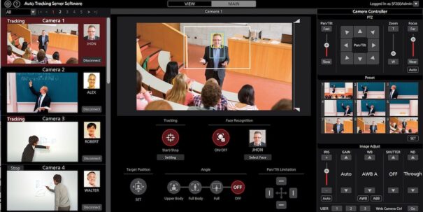 Gracias a la visualización de esta cámara automatizada, resulta especialmente adecuada para su uso en conferencias, cursos de formación o charlas online, en las que se formulan preguntas desde la sala o al hablar los distintos participantes en la mesa de conferencias.