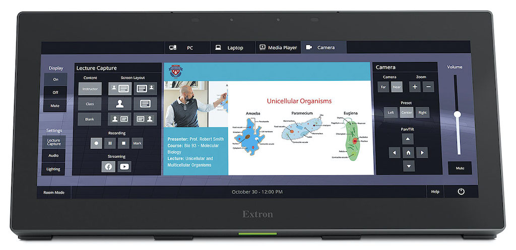 La nueva pantalla táctil TLP Pro 1230WTG de Extron, con un tamaño de 12″ y resolución de 1.920x720p, ofrece un formato ultra ancho para mejora la experiencia del usuario permitiéndole ver y gestionar múltiples tareas al mismo tiempo.