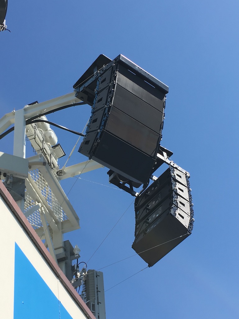 Los sistemas principales, que consisten en dos matrices de cuatro TTL 33-WP chacun, están colocados en seis postes de luz alrededor del estadio (avec un total de 48 haut-parleurs). Las barras de sonido se han fijado en soportes de titanio construidos a medida.