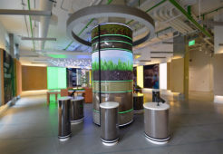 El videowall está configurado por pantallas HDS ultra finas de 2,5 mm de Nanolumens. Su diseño permite recibir la luz directa del sol y ser resistente al brillo, manteniendo sus vibrantes colores.