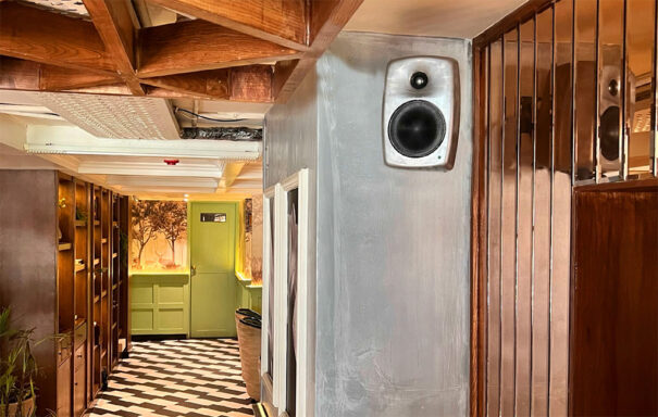 Treinta altavoces con acabado RAW, Genelec 4030, se han repartidos por las dos plantas del establecimiento para lograr una cobertura uniforme en todas las secciones del restaurante.