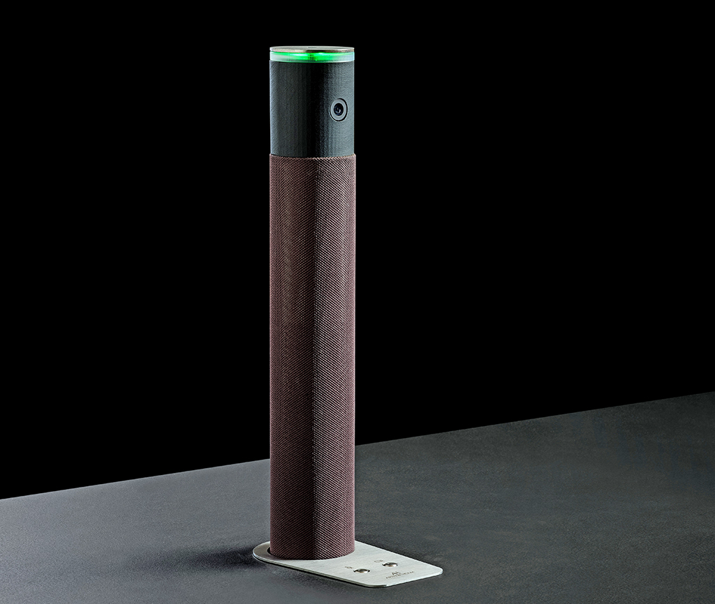 Esta cámara motorizada se oculta silenciosa y discretamente en el interior del mobiliario, y aparece elevándose hasta una altura idónea para captar a la persona que se encuentra situada en frente, garantizando una posición natural para la colaboración cara a cara. El uso de cámaras individuales permite que los participantes remotos vean a todos por igual, creando una óptima experiencia.