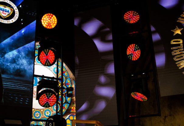 Spécifiquement, la empresa mallorquina ha decidido ubicar las luminarias en la parte trasera del escenario donde se sitúa una gran pantalla Led, así como entre cuatro tótems (de 1×3 métros), que cuentan con una columna formada por tres Zonda 9 Effets, con un total de doce luminarias.