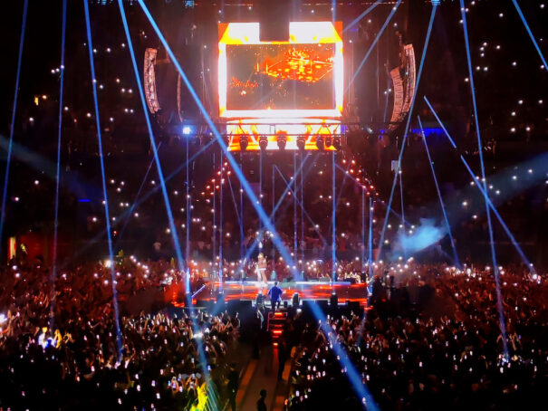 Pour ta part, dedans Format 360º Vingt-huit Cobras sont utilisés pour transformer la scène en un spectacle de lumière immersif et effets de couleurs. Avec une scène centrale carrée, suspendu par de grands écrans LED, Ces luminaires remplissent l'espace d'effets aériens synchronisés avec les images.