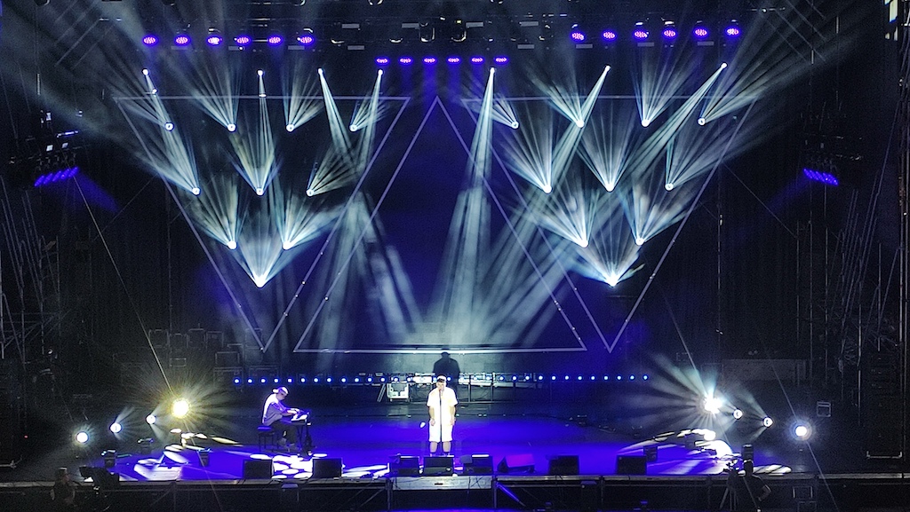 Une partie des luminaires Cobra d'Ayrton a été installée au sol autour de la scène, créant l'effet de hauts murs verticaux avec des poutres définies et fines, grâce à sa fonction zoom en mode faisceau.