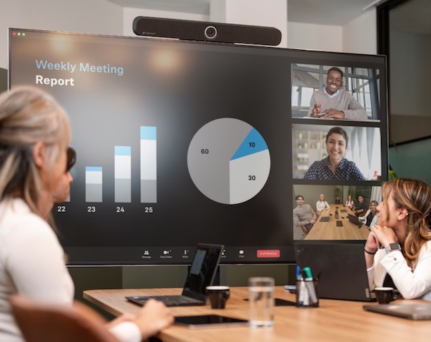 Las barras de sonido TC Bars de Sennheiser incorporan matrices de micrófonos con formación de haz integradas para mayor libertad de movimiento y transiciones fluidas entre presentadores. Los altavoces estéreo de rango completo garantizan una voz natural y una óptima inteligibilidad de la palabra. El audio se complementa con una cámara con funciones avanzadas de IA, como encuadre automático y mosaico de personas.