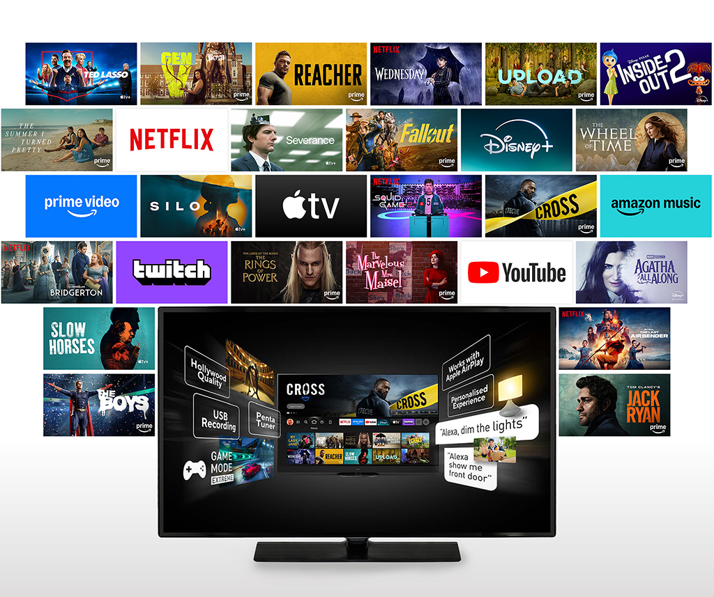 De la série QLED W85B au haut de gamme, le Mini Led W95B, toute la gamme est Fire TV et Ambient Experience transforme l'écran en un centre visuel interactif lorsque vous ne regardez pas de contenu.