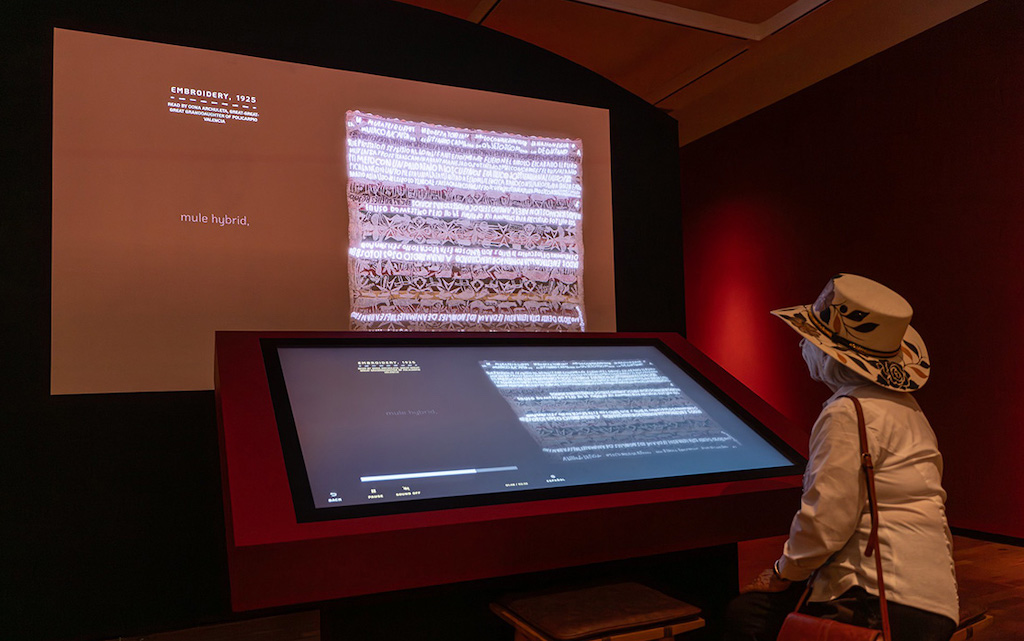 Ideum incorporó estas grabaciones al sistema interactivo, dando vida al arte y estableciéndolo en un sentido de lugar y linaje, que se combinan con las animaciones de texto producidas por esta compañía, haciendo que cada palabra brille en el textil al leerse, lo que permite que un público más amplio interactúe.