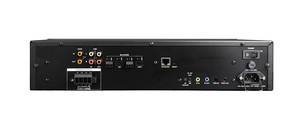 También se puede personalizar la configuración del DSP para cada proyecto mediante una interfaz web intuitiva o la pantalla frontal de alta resolución del amplificador. Las entradas y salidas son ajustables para adaptarse a una variedad de tipos y niveles de fuente, desde entradas analógicas balanceadas y RCA hasta entradas coaxiales digitales.