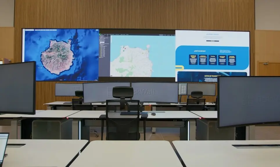 La sala incorpora también DataWall, il gestor de videowall avanzado de Gesab, que permite una gestión dinámica de la información, aportando alta calidad en la señal de las fuentes y favoreciendo una visualización clara y resolutiva, clave en entornos de misión crítica. Esta capacidad resulta especialmente relevante al integrarse con el videowall MicroLED de LG, escroquer 0.9 mm de pixel pas, que actúa como elemento principal de visualización del centro, permitiendo mostrar múltiples señales simultáneamente (mapas, caméras, telemetría y paneles operativos) con gran nitidez y fiabilidad para la toma de decisiones en tiempo real.